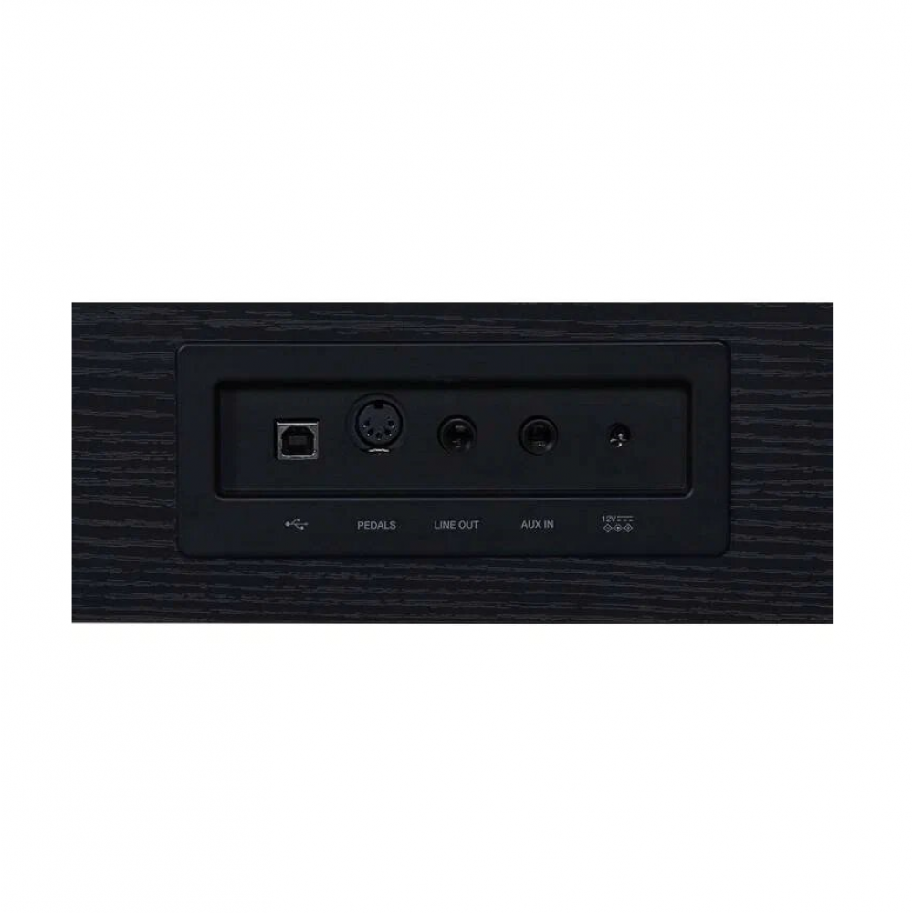Инструмент поддерживает USB-B (MIDI и аудио), MIDI Out, линейный вход и выход, два разъёма для наушников, а также полный блок педалей (сустейн, софт, состенуто). Подключение к компьютеру позволяет использовать пианино как аудиоинтерфейс для записи музыки.