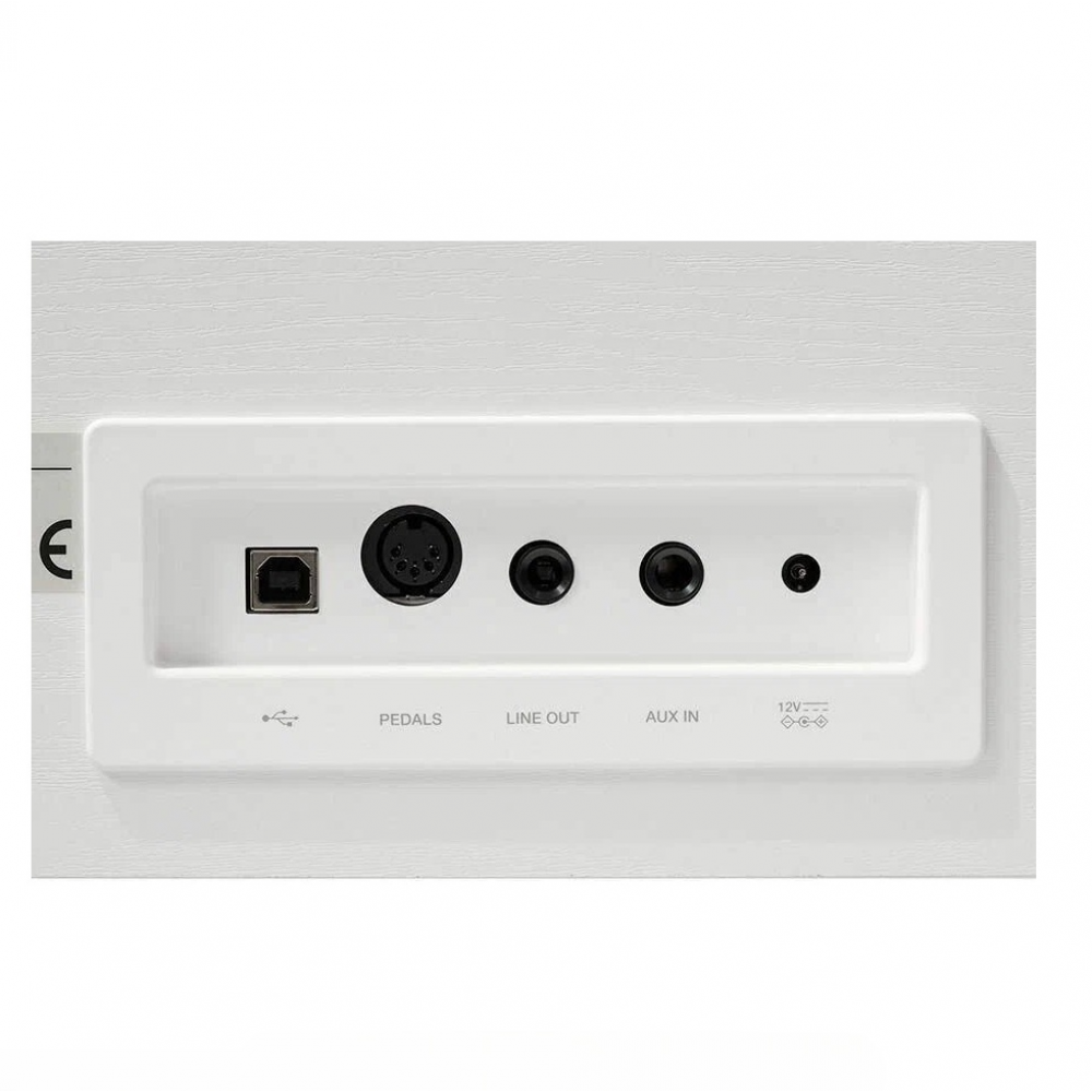 Инструмент поддерживает USB-B (MIDI и аудио), MIDI Out, линейный вход и выход, два разъёма для наушников, а также полный блок педалей (сустейн, софт, состенуто). Подключение к компьютеру позволяет использовать пианино как аудиоинтерфейс для записи музыки.
