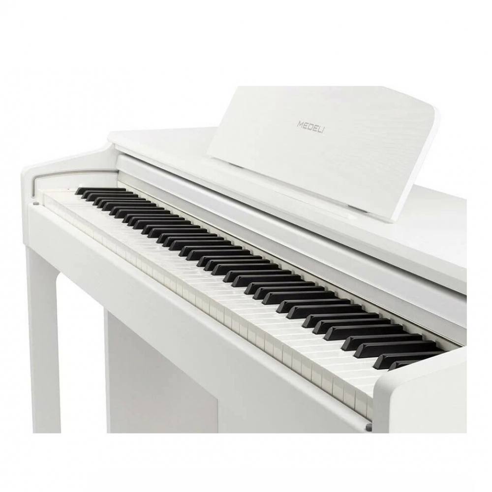 Оформить заказMedeli UP82 WH — это современное цифровое пианино в классическом корпусе с обновлённой молоточковой клавиатурой GAS-II. Улучшенный механизм обеспечивает более точную реакцию, естественный отклик и комфорт при игре, а матовые клавиши помогают избежать бликов и делают процесс обучения или концерта ещё приятнее. Благодаря мощной акустической системе и богатому набору тембров инструмент одинаково хорош и для дома, и для занятий в музыкальной школе.