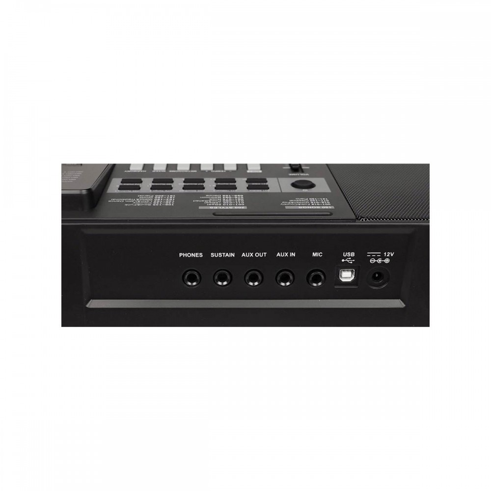 USB-MIDI для работы с ПК и ПО, вход AUX IN, выход AUX OUT, разъём для микрофона, наушников и педали сустейна.