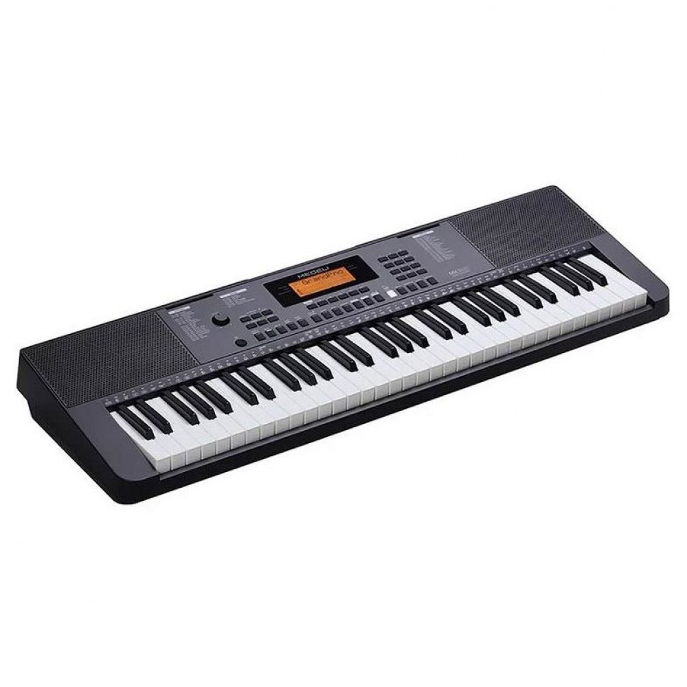 Две акустические системы по 2,5 Вт (динамики 2×12 см) обеспечивают чистое и громкое звучание. Возможность питания как от адаптера, так и от батареек (6×AA) делает синтезатор мобильным.