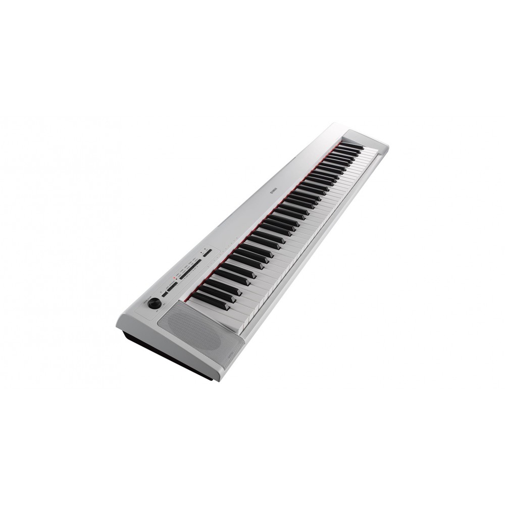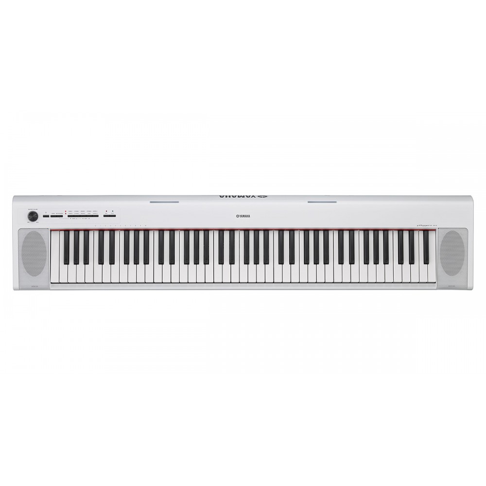 Yamaha NP-32WH – цифровое пианино с градуированной клавиатурой на 76 клавиш с усовершенствованным стереосемплированием, функцией полу-демпфера, USB-соединением, управлением приложениями iOS, встроенными динамиками и питанием от батареек. Цвет белый.