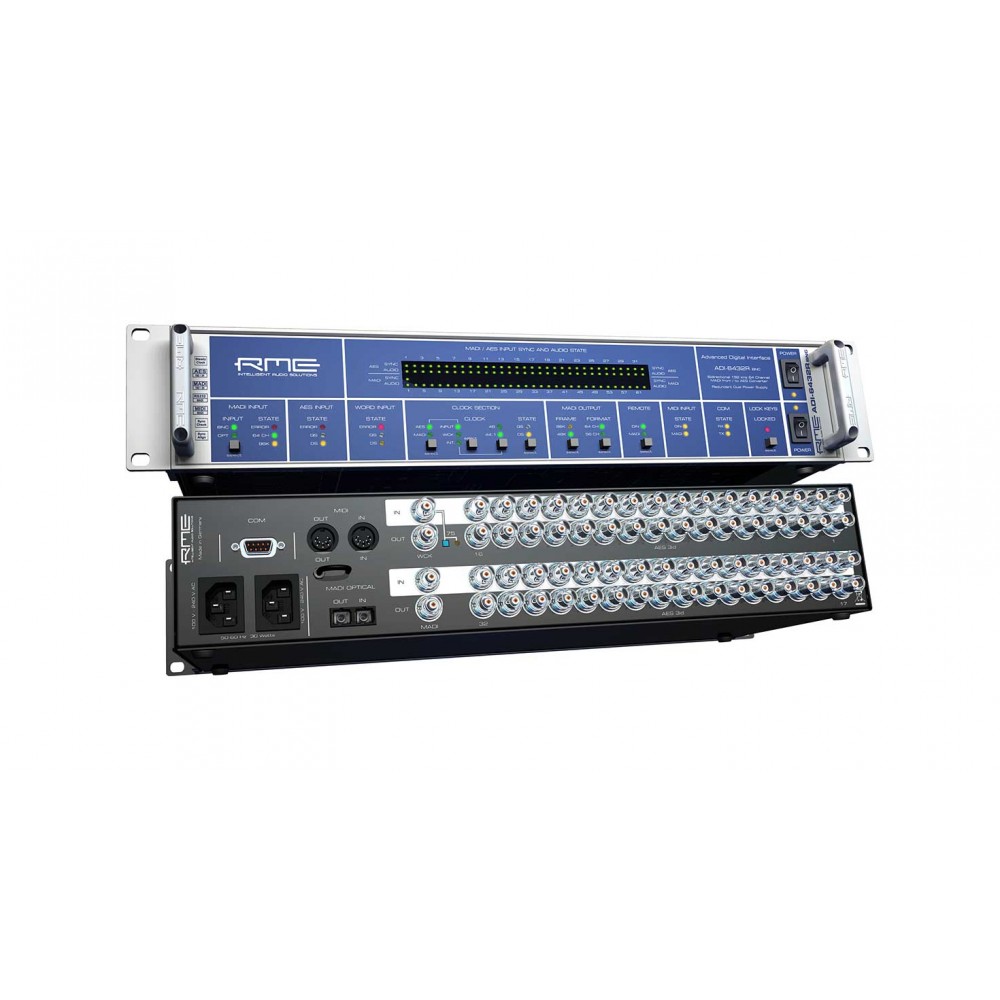 RME ADI-6432R BNC – 64-канальный конвертер форматов MADI / AES с частотой семплирования 192 кГц с разъёмами BNC и резервным источником питания.