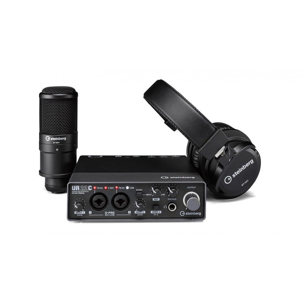 Steinberg UR22C Recording Pack — комплект состоящий из 2-канальной USB звуковой карты UR22C, студийного конденсаторного микрофона ST-M01, мониторных наушников ST-H01 и программного обеспечения Cubase AI, Cubase LE и WaveLab LE.