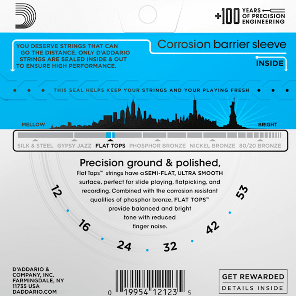 Характеристики струн для акустической гитары D'Addario EFT16 12-53: