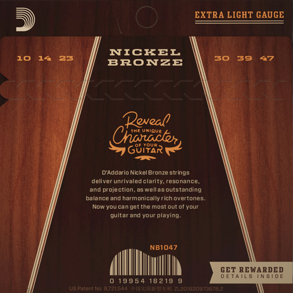 Оформить заказD'Addario NB1047 10-47 - струны для акустической гитары с обмоткой из никелированной фосфорной бронзы, толщиной 10-47, натяжение Extra Light.