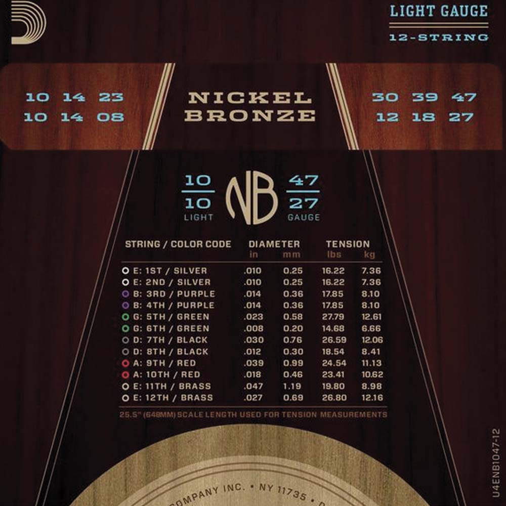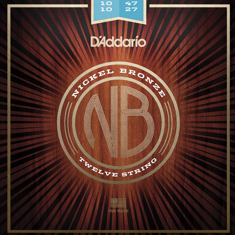 D'Addario NB1047-12 10-47 - набор струн для 12-струнной акустической гитары калибром 10-47, обмотка выполнена из никелированной бронзы, натяжение Light.
