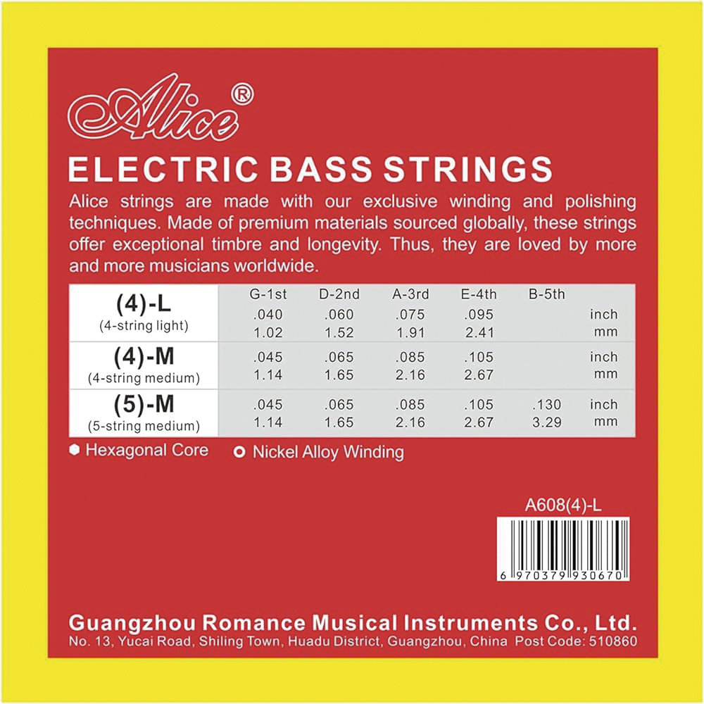 Набор струн Alice A608(4)-M 45-105 предназначен для четырехструнных электробасов. Керн струн изготовлен из стали, имеет шестиугольную форму, обмотка выполнена из специального никелевого сплава. Такое сочетание придает струнам мощный и плотный звук с богатыми гармониями и четко выраженными высокими частотами.