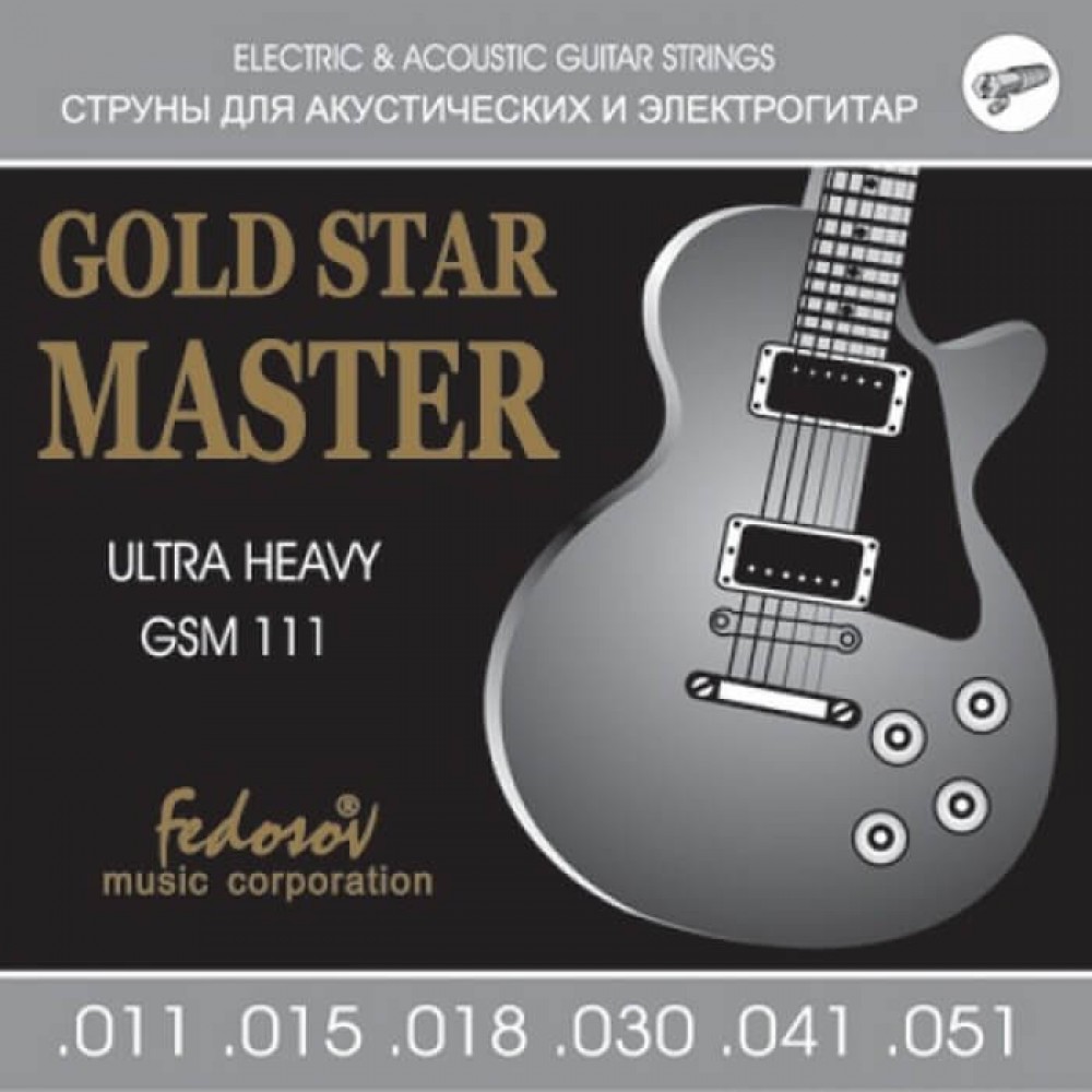 Струны для электрогитары GSM111 от Fedosov относятся к серии Gold Star Master, керн выполнен из стали, имеет шестигранную форму, обмотка выполнена из нержавеющего сплава. Натяжение комплекта - Ultra Heavy.