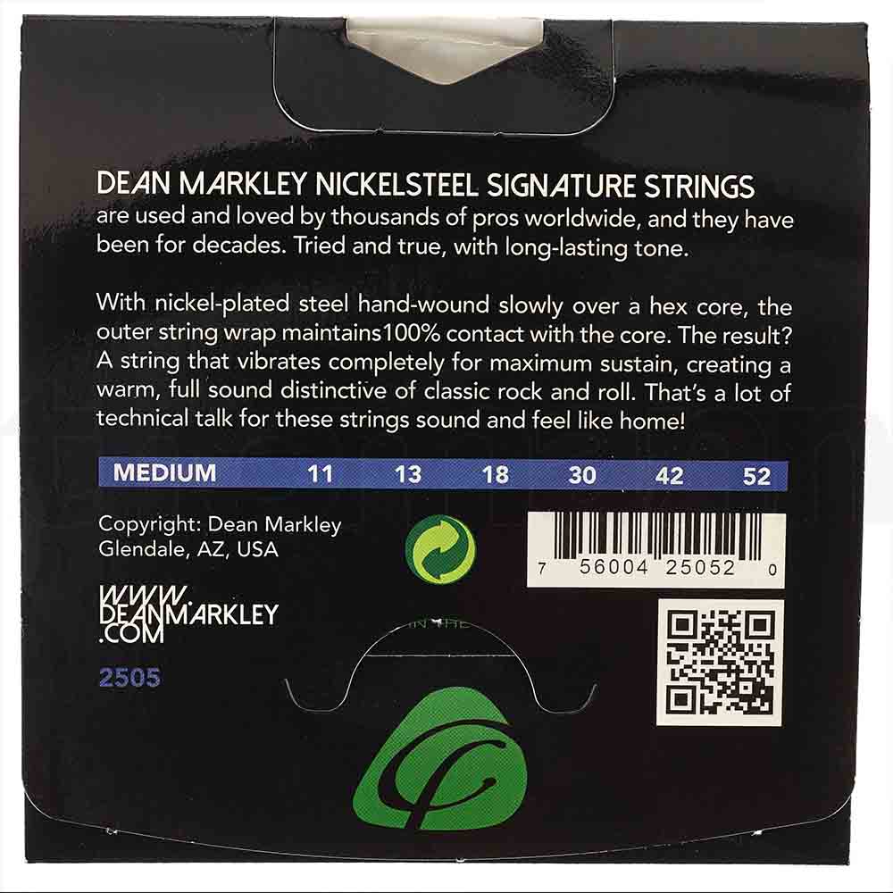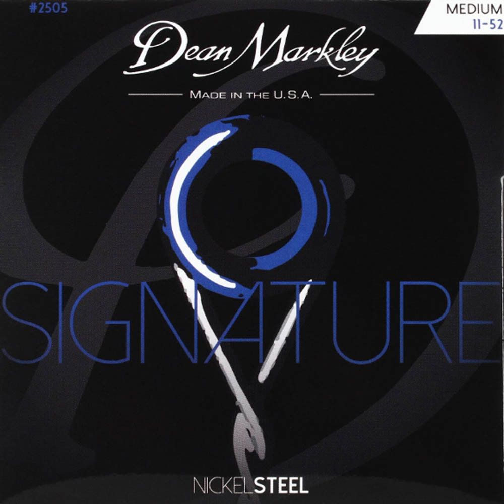 DM2505 11-52 от Dean Markley относятся к серии NickelSteel Electric, обмотка басовых струн выполнена из никелированной стали, керн басовых струн, как и струны без обмотки, выполнены из стали.
