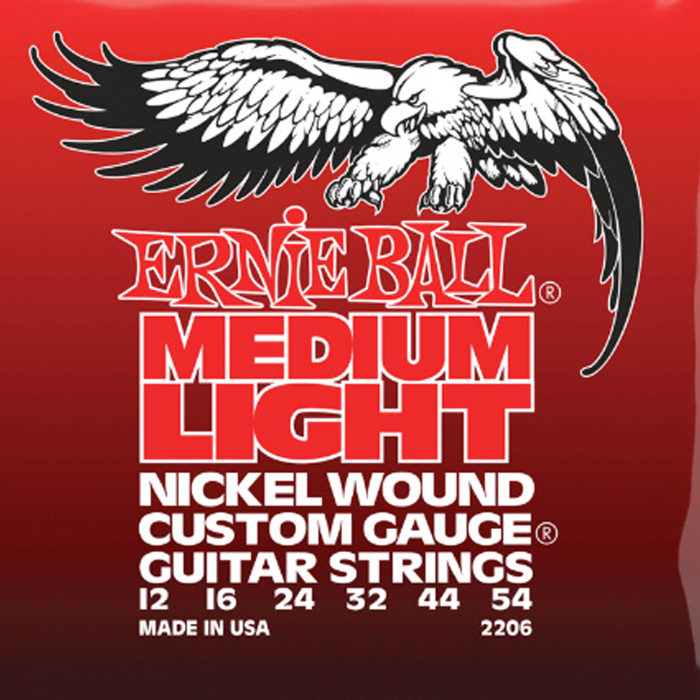 Оформить заказErnie Ball 2206-Y 12-54 - комплект струн для электрогитары калибром 0.12-0.54 с обмоткой из никелированной стали, третья струна в обмотке, среднее-легкое натяжение.